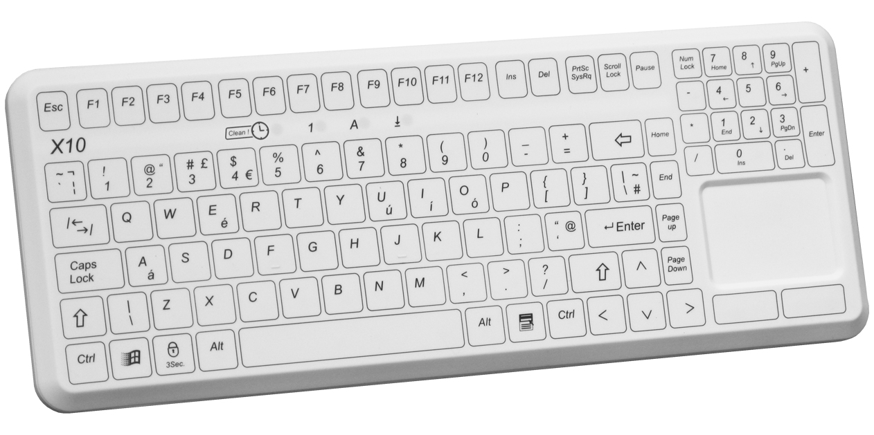 Klawiatura z 105 klawiszami i pełną funkcjonalnością MFII, w tym klawiaturą numeryczną, posiada pełną ochronę przed pyłem i cieczami (IP68). Jej bezszwowa konstrukcja umożliwia łatwe czyszczenie, a funkcje CleanRemind i blokady chronią przed przypadkowym wprowadzeniem danych. Odporna na detergenty i środki dezynfekujące, zapewnia szybki proces sterylizacji. Ergonomiczna obudowa, ciche pisanie, precyzyjne klawisze oraz wbudowany touchpad o wysokiej rozdzielczości zapewniają wygodę użytkowania. Z interfejsem USB i testami EMC zgodnie z normą EN 60601-1-2, klawiatura jest idealnym rozwiązaniem do środowisk medycznych.