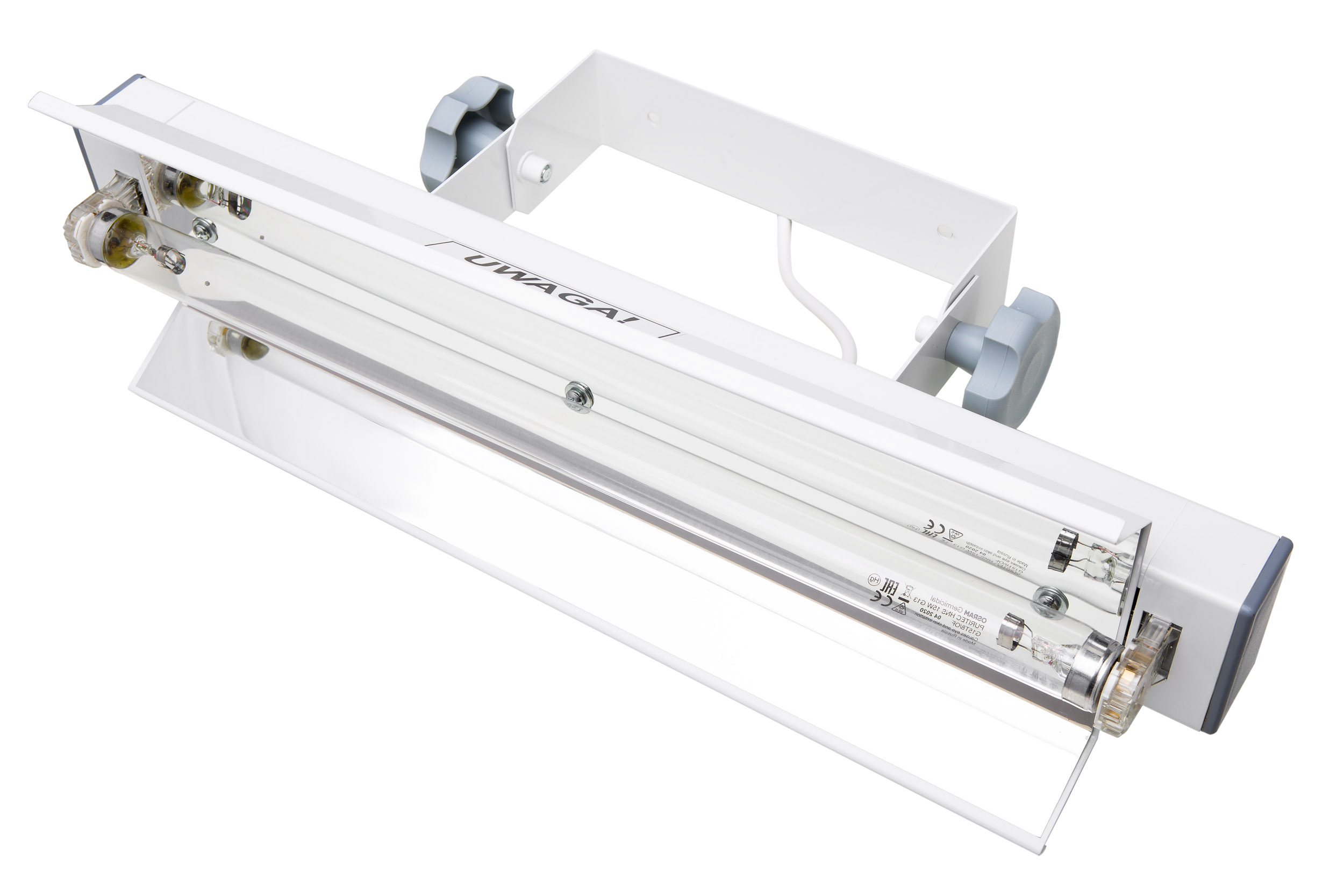 Lampa bakteriobójcza do dezynfekcji pomieszczeń. Jeden promiennik (15 W) nieodwracalnie dezaktywuje bakterie, wirusy, pleśnie, grzyby oraz wszelkie inne drobnoustroje. Dezynfekcja podczas nieobecności ludzi. Wersja naścienna.