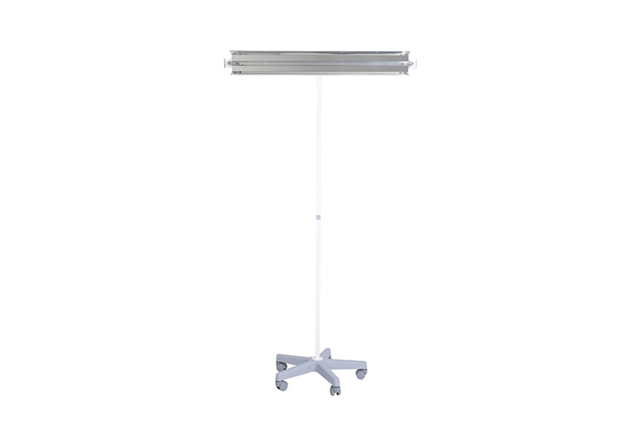 Montaż na statywie przejezdnym oraz przewód z wtyczką do gniazdka ułatwia dezynfekcję w różnych pomieszczeniach.