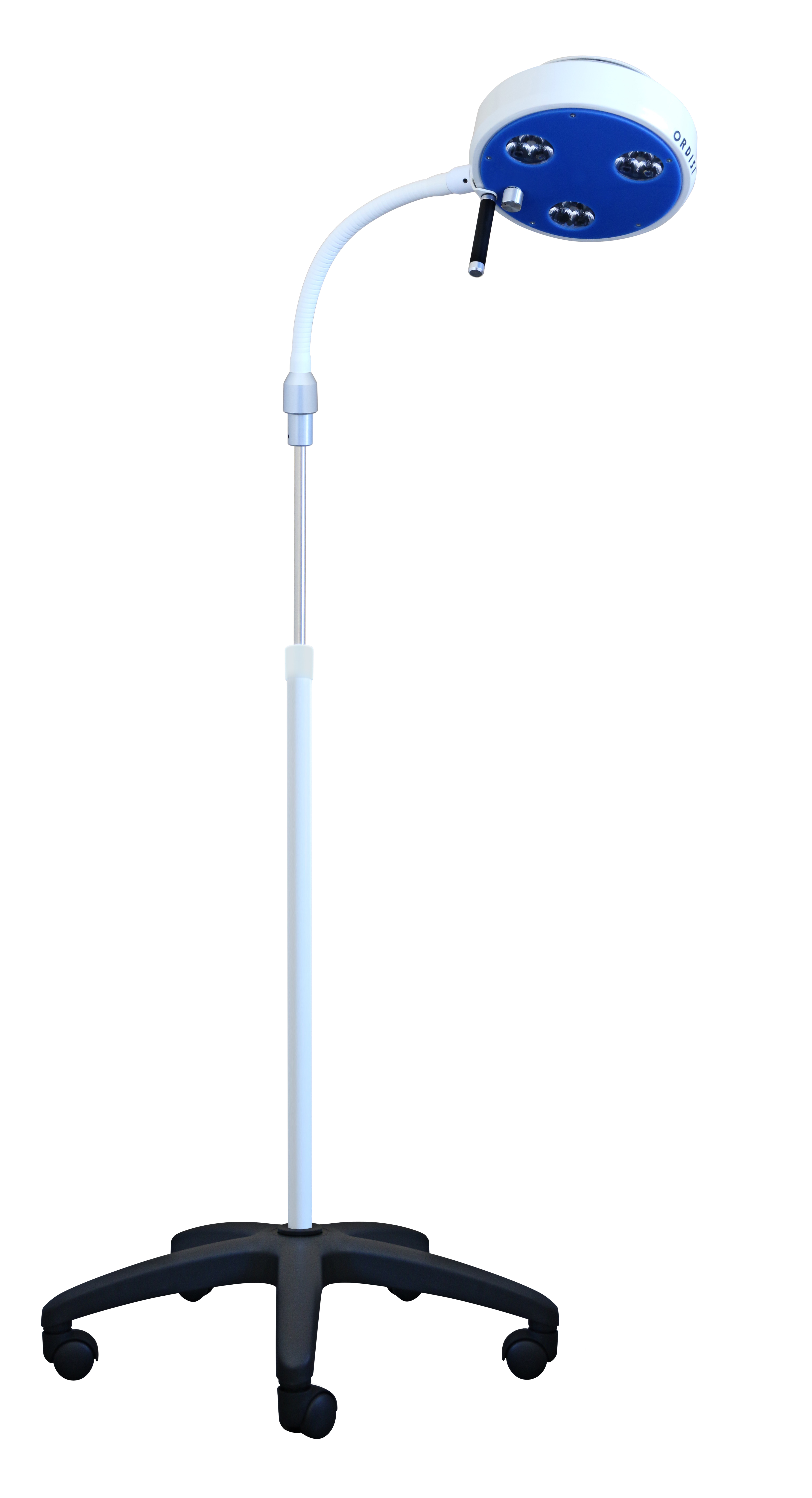 Mocowanie lampy: w zestawie wózek jezdny o stabilnej podstawie, z regulacją wysokości lampy.