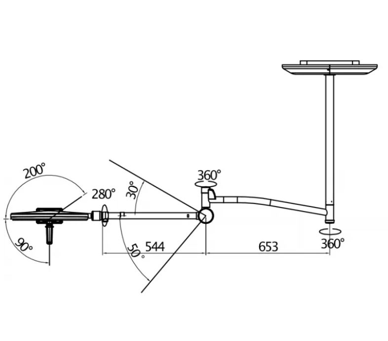 Lampa zabiegowo-operacyjna S300 sufitowa z regulacją natężenia światła, regulacją temperatury barwowej oraz regulacją pola roboczego. Zastosowano technologię minimalizacji cienia.