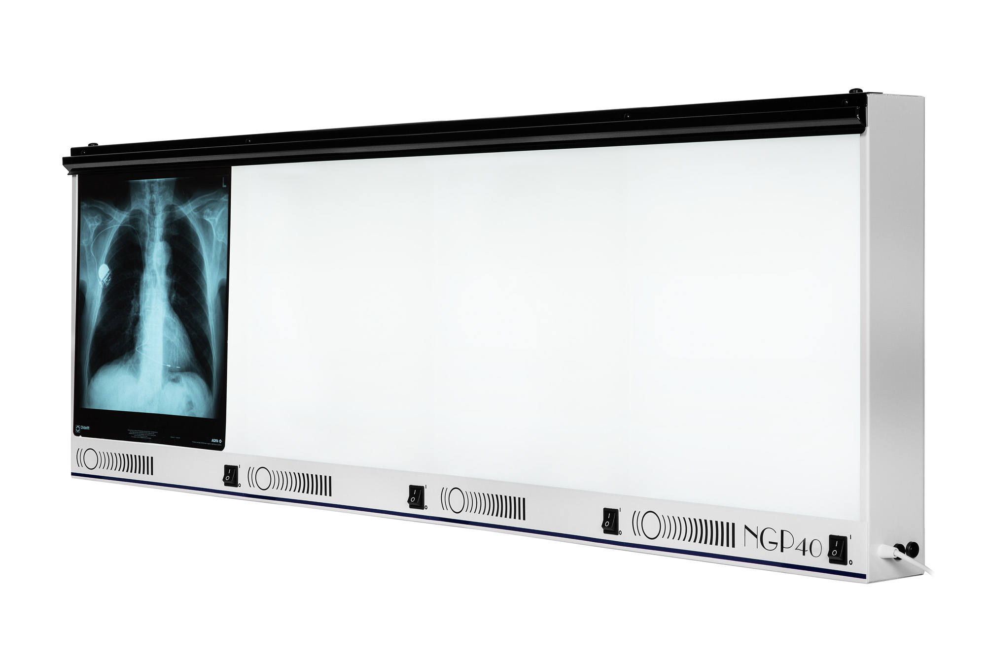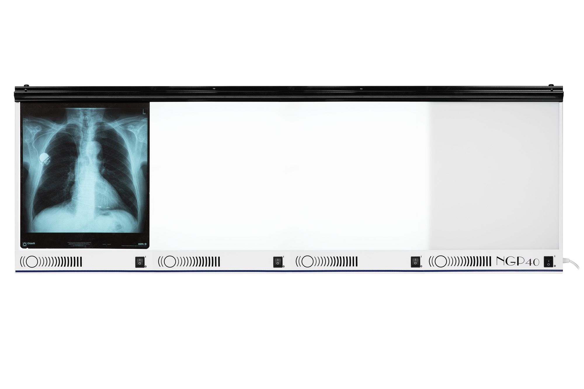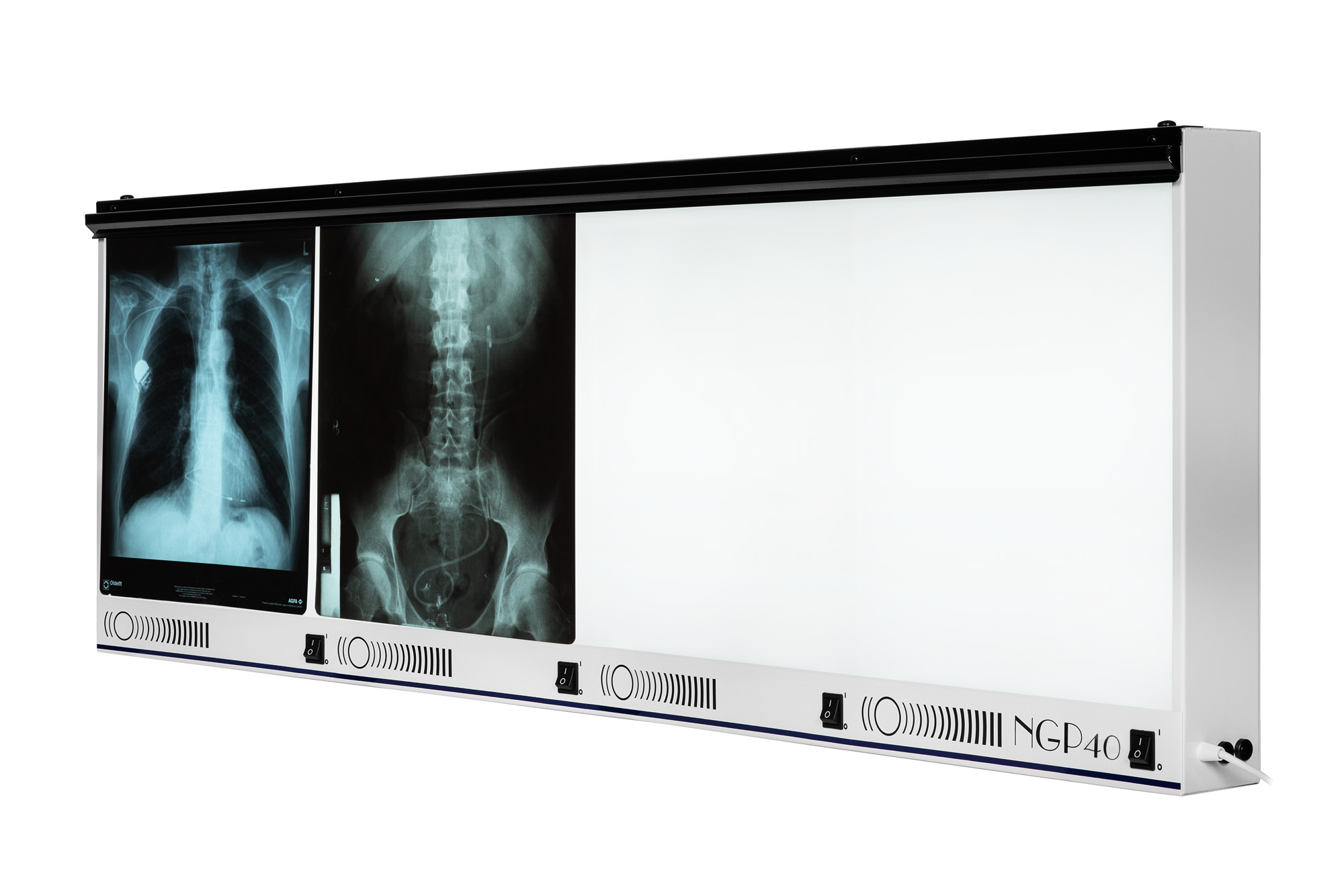 Negatoskop NGP 40 - czteroklatkowy jest idealnym produktem do zastosowania w szpitalach, przychodniach, klinikach, gabinetach zabiegowych, izbach przyjęć a także w wielu innych placówkach ochrony zdrowia.
