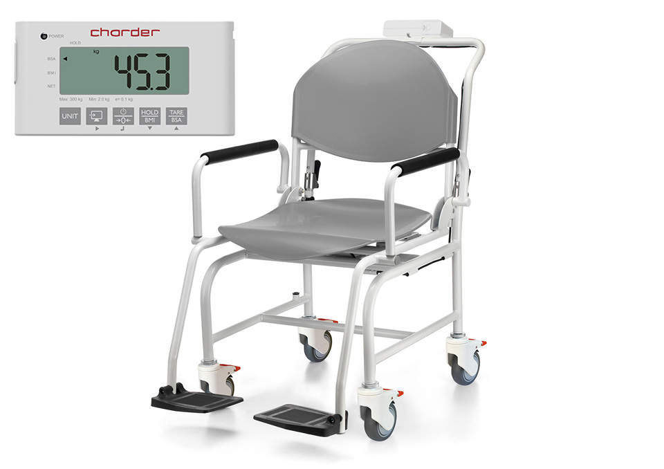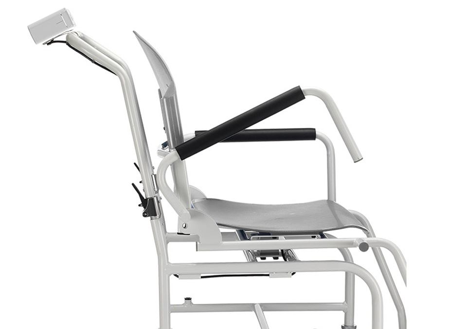 Nowatorska składana konstrukcja wagi krzesełkowej CHARDER MS5461, pozwala na natychmiastowe złożenie wagi (w celu łatwiejszego przechowywania i transportu) nawet między pomiarami - waga składa się na zawiasach umiejscowionych pod oparciem oraz pod poręczą z panelem wagowym. Po złożeniu najwyższym punktem wagi jest siedzisko. Wszystkie kołka skrętne i z blokadą, podłokietniki uchylne.